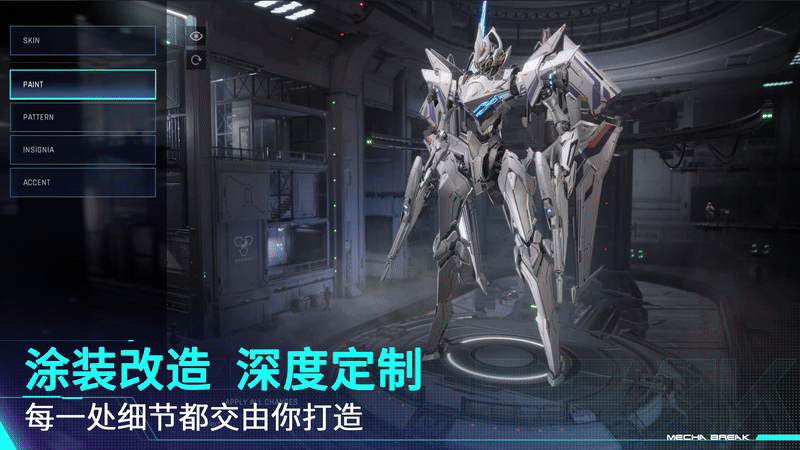 自由组合上千种自定义元素为你的机兵设计独一无二的涂装方案,在激烈的战场上脱颖而出!不论整机涂装或是对外甲、内构进行细节调整,超百余处可自定义部位都交由你任意发挥;丰富的漆面、纹样、徽章、标贴将赋予机兵鲜明的个性,机兵将不再是冰冷的战争机器,而将成为你意志的化身!
