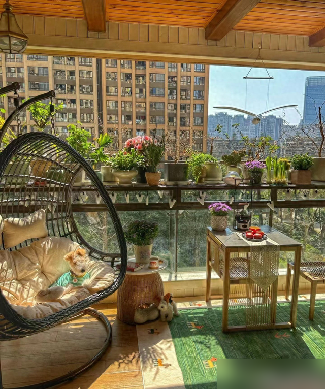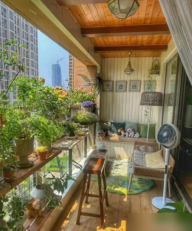 见过太多堆满杂物的阳台,也看过不少花里胡哨的网红设计,但刘阿姨这十平米的小天地真让我心服口服。